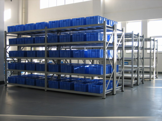 主要由柱片、鋼層板組成。立柱采用輥壓成型工藝,配合斜拉桿、水平拉桿連接而組成立柱片。根據需要搭配側梁式層板或橫梁式層板使用,層板可以以每50毫米為節距上下任意調整層高,貨架為插接組合式結構,穩定性高,安裝拆卸方便。單元貨架每層載重量200kg-800kg之間,總載重一般不大于5000kg。單元貨架跨度通常不大于2.6m,深度不大于1.2m,高度一般在5m以內。適用于承載中小件貨物。廣泛應用于商場、超市、企業倉庫及事業單位等各種行業。
