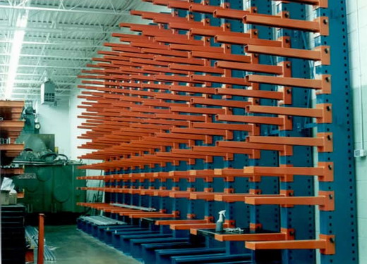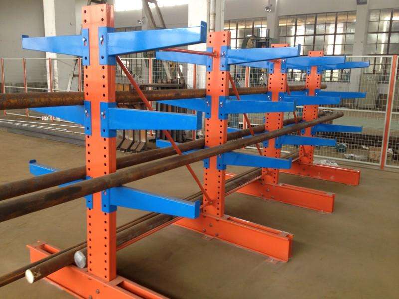 懸臂式貨架是由立柱、柱梁和懸臂組成。立柱采用自動預充孔軋制式雙拼C型專用型鋼作為立柱,以200、140工字鋼作為底梁,柱梁采用專用梯形板并用高強螺栓連接。懸臂梁為雙內折邊C型對焊。懸臂梁與立柱用鍍鋅銷板連接。柱組間用連接件連接。(立柱多采用H型鋼或冷軋型鋼,懸臂采用方管、冷軋型鋼或H型鋼。懸臂與立柱間采用插接式或螺栓連接式,底座與立柱間采用螺栓連接式。)單臂承重可達1000kg以上,特別加固的立柱結構,可以承受2000~3000kg壓力。組合式結構,專用型材立柱,設計背拉增加穩定型,配高強度懸臂(臂可以為單面或雙面),具有結構輕巧、載重能力好、空間利用率高等特點。 懸臂貨架優點